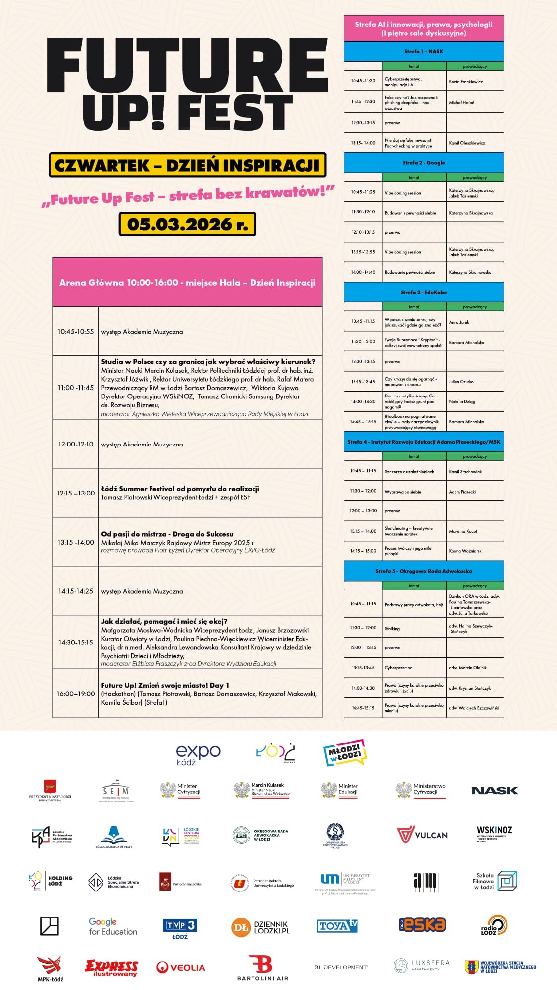 Już 5–7 marca 2026 r. w Expo-Łódź rusza pierwsza edycja Future Up! Fest–innowacyjnego festiwalu edukacyjnego dla młodzieży 13–19 lat (uczniowie klas VII–VIII oraz szkół ponadpodstawowych). Zapraszamy.